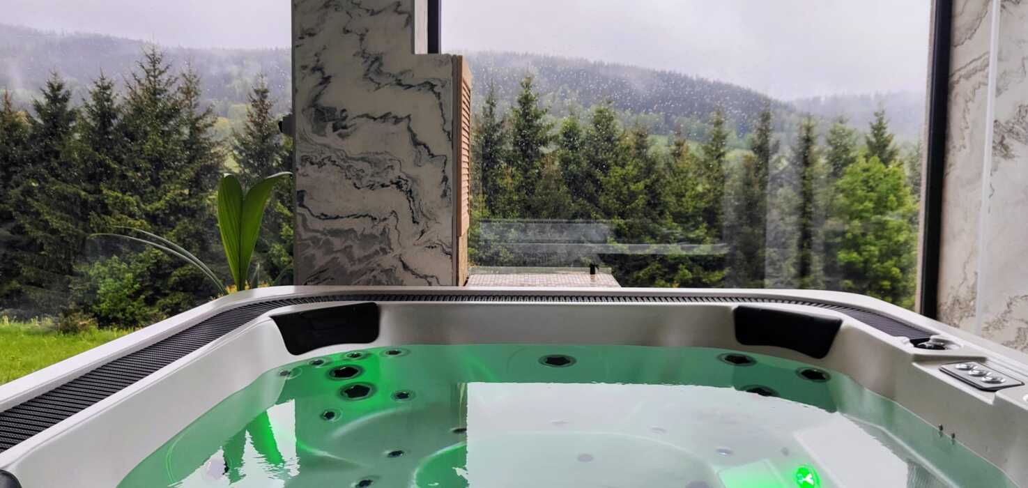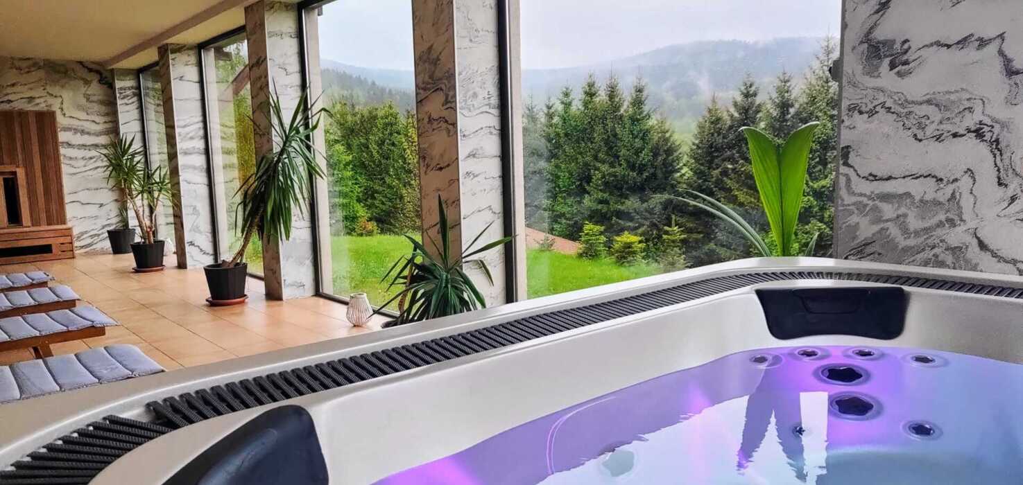 Te wszystkie udogodnienia umiejscowione są przy panoramicznych oknach z widokiem na góry.